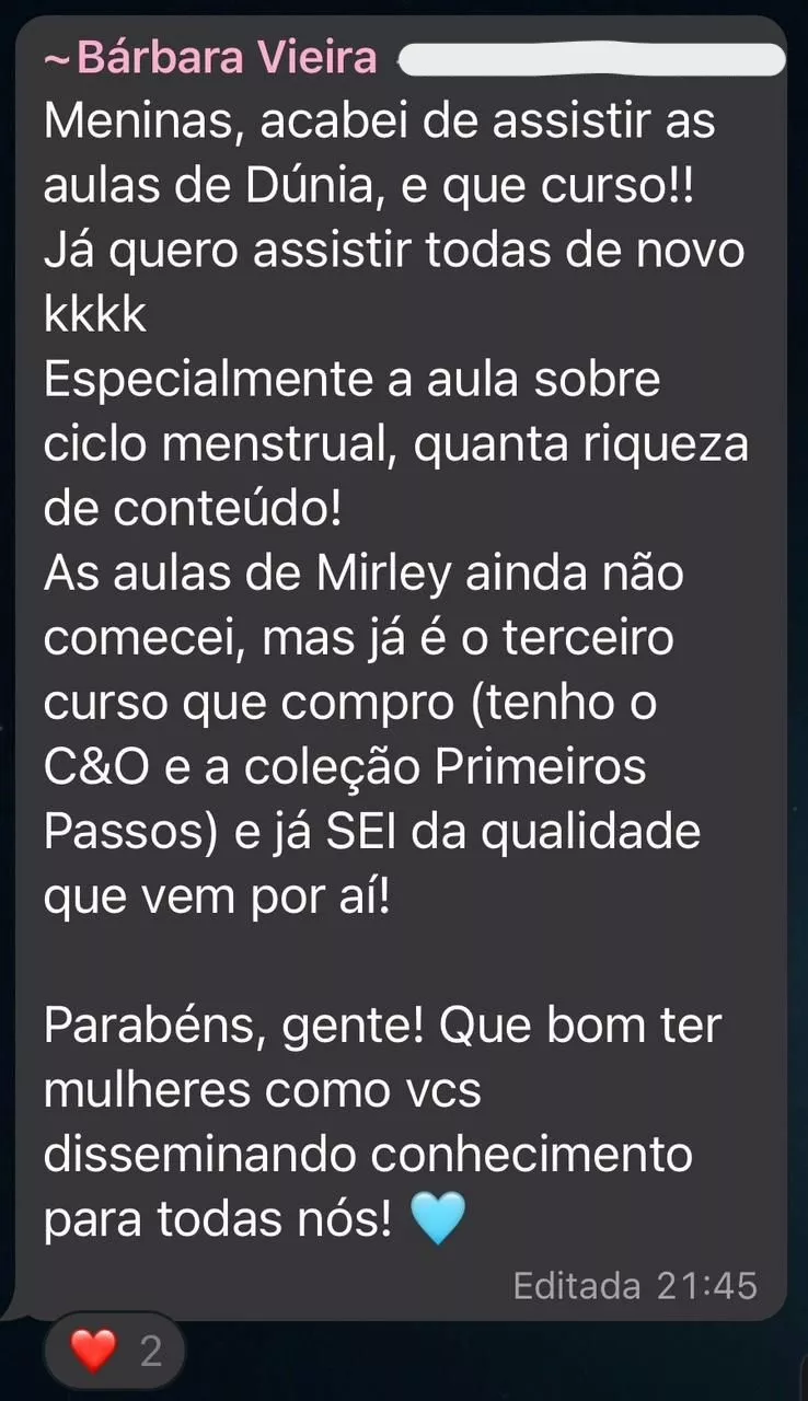 Esse curso foi pensado para todas as mulheres, ele vai te ensinar a lidar com ciclo menstrual de maneira saudável e eficiente, independente de alguma questão de saúde específica. Porém, para tratar doenças e questões específicas é necessário passar em consulta com uma ginecologista.